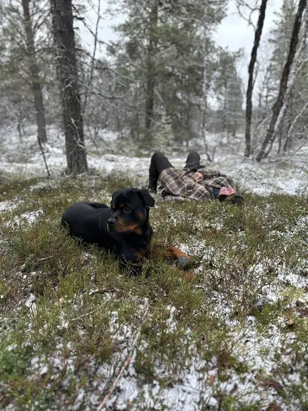 Lunchen ägnar jag åt rottweilrarna Semla och Atlas. Långpromenad i skogen med bästa sällskapet. Får ett hastigt besök av norska vänner, som jagat ripa, mitt på dagen.
