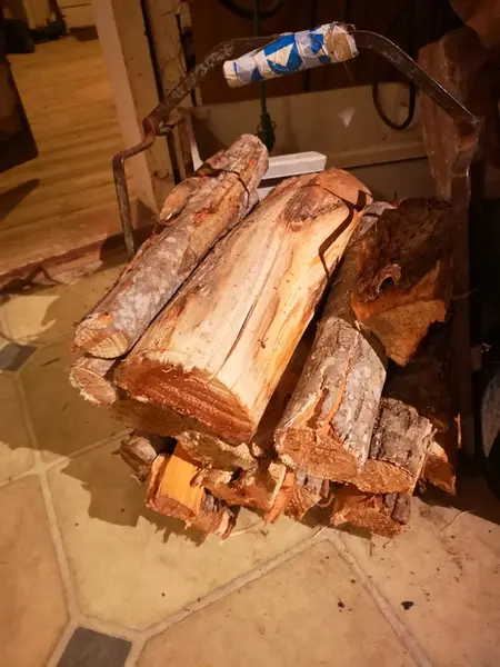 Huset övriga börjar dycka fram någon går ut med vår Sabueso español på en promenad. Själv tar jag vid 11, mig ut till vedboden för att ta in ett vedlass. Nu orkar jag inte springa med vedkorgarna det blir den stora gröna skottkärran. Nu räcken nog detta lass till onsdag…