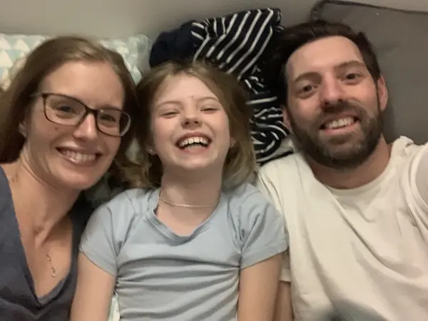 Vi ligger hela familjen i sängen och tittar, mysigt.