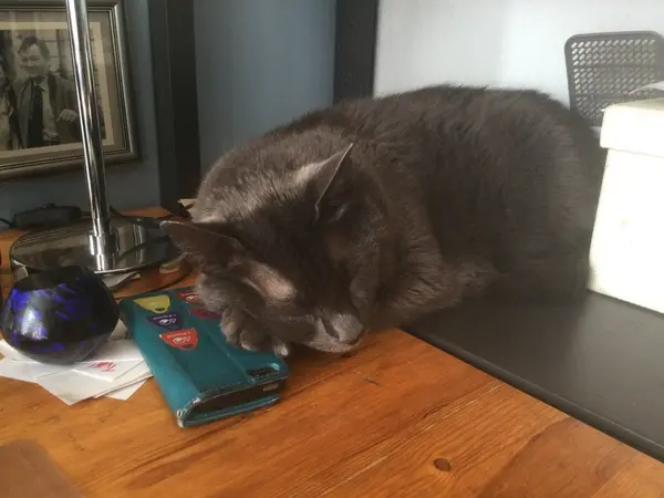 Ozzy masade sig ner från sängen och la sig på mitt skrivbord istället. Mitt på musmattan. Flytta dig Oz, jag håller på att med en grej här.