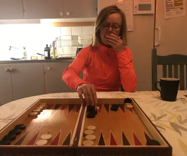 Dagens andra kopp kaffe på det till ett parti backgammon, som jag dessvärre förlorade.