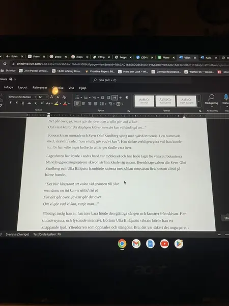 Jag vaknar motvilligt när mitt mobilalarm ringer klockan 06:04. Min arbetsplats ligger i Karlsborg men jag bor i Varnhem mellan Skövde och Skara så resvägen är ungefär sex mil. Jag har fem barn och man men jag behöver inte hjälpa till med något av morgonbestyren hemma eftersom jag har så lång resväg. Min man hämtar och lämnar vår femåring på förskolan, vilket är jobbigt för honom men skönt för mig. Faktum är att jag just nu tar ytterst lite ansvar för hemmet överhuvudtaget. Jag bara drar ur sladden ur billaddaren, sätter mig i bilen (det är en laddhybrid), åker och parkerar den i Skövde, hoppar på bussen (vill inte köra en massa bil i onödan, både av klimatskäl och av ekonomiska anledningar) och kliver av i Karlsborg. Skönt, för jag har värdelöst morgonhumör och jag tror ärligt talat att min man är bättre på att få ordning på alla detaljer kring barnens skola och förskola. Jag jobbar som kommunikatör på K 3, Livregementets husarer, och det innebär att mitt kontor finns i Karlsborgs fästning. Varje gång jag kommer fram till fästningen fylls jag av någon slags tacksamhet över att jag får jobba i en så speciell byggnad. Jag tycker att den är otroligt vacker, och intressant, eftersom man känner att historien är med en genom hela arbetsdagen. Något som dessvärre inte är med en är mobiltäckningen. Väggarna är tjocka och det innebär att jag och mina kollegor svär en hel del över att vi inte kan jobba obehindrat med till exempel våra konton i sociala medier. Den här morgonen är en av de intressanta nyheterna för oss informationen från dagen före om att Turkiet klivit ett steg närmare att godkänna Sveriges Natoansökan. Vi har trott att Natomedlemskapet ska bli av här och nu flera gånger tidigare, men inget har hänt, så vi är inte överdrivet laddade och taggade av nyheten. En annan sak som jag arbetar en hel del med under dagen är beskedet att en av våra kollegor blivit världsmästare i Adventure Race i Sydafrika. Detta publicerar jag inlägg om på såväl regementets Instagram som Facebook, och därutöver ägnar jag mig åt ett möte med ett antal kollegor på staben. Lunchen intar vi klockan 11:30. Jag har med mig matlåda bestående av pasta med sås på zucchini, soltorkad tomat, crème fraîche och oliver. Den är fortfarande god, trots att jag lagade den två dagar tidigare. Ibland äter jag fisk, men för det mesta helt vegetarisk kost. Anledningen är samma som med bilkörandet – jag är orolig för klimatpåverkan och därutöver uppskattar jag inte djurhållningen när det gäller till exempel gris-, nöt- och kycklingindustrin. Efter lunch går jag till gymmet med en kollega. Det är vårt första besök där. En fördel med mitt jobb, som jag haft sedan i februari, är att man får träna på arbetstid – tre timmar fys i veckan. Det finns också krav på styrka och kondition, och vi gör fystester årligen, även vi som är civilanställda. Vi får ett program av en av de anställda idrottsavdelningen som innehåller allt från armhävningar till bencurls – alla övningar ska göras i tio repetitioner med tre upprepningar. Därefter går jag tillbaka till mitt kontor, arbetar lite mer och ser till att packa ner utrustningen som jag behöver inför morgondagen. Då ska jag fotografera strid i bebyggelse och det innebär att jag behöver ta med mig kamerautrustning och uniform hem, samt jobbdatorn och min privata dator. Min chef skjutsar mig till bussen och tur är det för jag har nu med mig två ryggsäckar och en bärsäck, och det är svårt att få med de väskorna utan fler händer. På bussen skriver jag på nästa bok. Jag delar ut internet från min privata mobil till min privata dator. Det känns värdefullt att använda tiden på bussen på det här sättet. Jag har skrivit en historisk roman tidigare, Mer än en fiende som utspelar sig 1943, och nu håller jag på med nästa roman som bygger på händelserna då en tysk testraket av misstag exploderade över Småland sommaren 1944. Att komma över fakta om livet under den här tiden är stundom svårt, och stundom förvånansvärt enkelt. Jag kan botanisera i timtal i DN:s arkiv där alla tidningar finns digitaliserade. När man läser dagstidningar från den här tiden får man en mycket bättre uppfattning om språk, vardag, populärkultur och privatekonomi, tycker jag. Innan jag kör hem stannar jag till på Coop eftersom min 16-åring ringt och beställt choklad. Jag går med på att köpa det med en suck eftersom jag är en alldeles för snäll förälder ibland. Och när jag har köpt en present till ett barn, måste de andra också få något, särskilt som de råkade höra i telefonen vad som var på gång. De tre minsta – femåringen, tioåringen och tolvåringen – får dela på en påse Sour Cream-chips. Den äldsta som är tjugo år får en egen chokladkaka med smaken mintkrokant, och 16-åringen har valt Caramelo. Japp, jag köpte Marabouchoklad, trots att jag borde bojkotta dem eftersom de fortfarande har verksamhet i Ryssland. För den som har glömt det här i framtiden så är jag och de flesta andra negativt inställda till Ryssland för tillfället, eftersom de bedriver ett hemskt anfallskrig i Ukraina. Situationen i Gaza är också fruktansvärd. Jag gråter varje gång jag ser nyheter om civila – OM BARN – som skadas och dödas där. Önskar väldigt mycket att jag hade kunnat skydda alla barn på något praktiskt sätt, både där och i Ukraina. När jag kommer hem till vår villa har min man fixat kött- och vegbullar, potatis, brunsås och egen pizzasallad. Konstig kombination, men det är väldigt gott, särskilt den egengjorda pizzasalladen. Under kvällen förhör jag min 16-åring inför hennes psykologiprov om behaviorismen, och letar lämplig balklänning på Sellpy. Ska på regementsbal i december – ser fram emot det! Jag anmäler också mina äldsta barn till några hopptävlingar med deras h