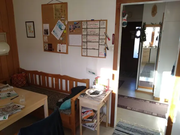 Min fru och jag pratade lite om dagen och konstaterade att vi inte skulle ses så mycket. Jag råkade kasta en blick på bordet där två helt onödigt inplastade ”Mersmak” från COOP låg. Den ena till dottern som bor på ett boende helt nära och har min fru som god man och den andra till mig. Råkade se att det fanns ett korsord i denna reklamtidning och slet av plasten . letade fram korsordet och gav det till min fru som tycker om korsord. Hon löste lite men fick gå ut till bilen 7:30 för att hinna de 1,5 milen till jobbet. Hon tittade på termometern och suckade lite över de 14 minusgraderna. Men bilen står i garaget . en elhybrid av Toyota modell som är min men det blir billigare att hon kör den. Vi har faktiskt sänkt bensinkostnaderna med ett par tusen vissa månader p.g.a detta. Själv åker jag mer och mer buss då man då är friare att göra saker på telefon och platta de tjugo minuterna det tar in till stan.