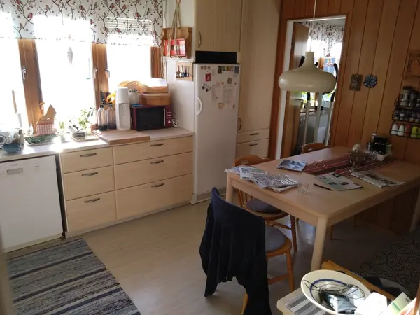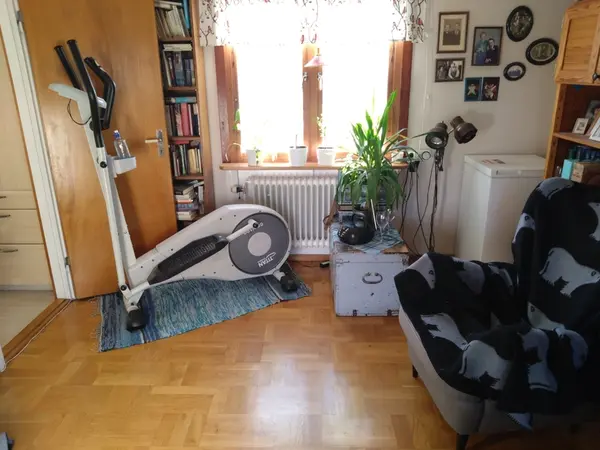 Då jag vaknande låg jag på höger sida på min formgivna kudde. CPAPen knagde lite på kinden och min sov öronsnäcka för godnatt ljudboken kändes i mitt öra. Frun drog upp rullgardinen med en rejäl smäll efter sitt artros träningsprogram. Hon fick som vanligt gå först till toaletten då hon fortfarande jobbar på sista året. 73 års smärtorna eller ska man säga irritationerna i ryggslut och lår samt vader kändes men inte lika mycket som vanligt trots att jag stått 1,5 timmar på crosstrainern och sett båda avsnitten av ”Vetenskapens värld” om hjärnan. Ett intresse man får då frontalloben mist halva sin kapacitet från ungdomen och minnet sviktar. En ständig oro och irritation speciellt då närminnet inte hänger med. Jag tog av mig CPAPen och tog på mig glasögonen , plockade fram telefonen från vilken jag läst ljudboken i går kväll. Jag har det som livslång vana då pappa läste Nils Holgersson för mig då jag var liten och jag byggde en radio av en gammal telefon då jag blev större. Lade den under kudden och lyssnade till sömnen kom. Man fick bara in P 1 så det var många föreläsningar av bildande karaktär man fick vara med om då. Sedan hängde radion med genom livet i form av små apparater som avlyssnades vid tillfällen. Min fem år äldre syster hade samma vana och min fru har fallit totalt för ljudböcker och läser oändliga många gånger norska böcker om familjers historia i Norden och i tiden. Vi somnar bägge till ljudböcker. Jag tog telefonen i handen och gick upp till toan då min fru ropade klar, först kissade jag som alltid men kunde konstatera att jag inte varit upp på natten vilket ju var en tröst då även prostatan oroar lite då och då. Jag tvättade mig och lade lite ögondroppar i ögonen för att lätta på den irriterande dimman framför ögonen. Klarögd gick jag ut i köket där frun samlade ihop sin youghurt frukost med havregryn och cornnflakes. Såg faktiskt inte om hon tog banan i denna morgon. Själv satte jag på kaffe enligt tradition och tillredde min tallrik med havregryns gröt , fibersatt med kruska kli . Denna morgon tog jag vår hemgjorda svartvinbärssylt trots att vi köpt lingon till köttfärsrätter men det känns alltid lite bättre att ha de egna bären. Potatisen, det lilla grönsakslandet , de fina trädgårdshallonen , röda och svarta vinbär har vi egentligen bara som ett biologiskt minne av våra förfäder. Då vi växte upp på femtiotalet var det nödvändigt att dryga ut lönen för en arbetare med lite egen odling. Svartvinbärssylten till morgongröten var betingad av att vi för några år sedan råkade ut för att en av våra frysar gick sönder , den där vi hade alla lingonskördar sedan tre år tillbaka i. Sånt som inte blivit kokat. Då köpte vi en ny frys och även en som vi hade uppe i köket för dagligvaror. Vi har alltså tre frysar utan större vetskap om innehåll. Vi har bättre kontroll på matkällaren. Jag gick också och hämtade min flishuvudtröja i arbetsrummet för det kändes lite kallt.