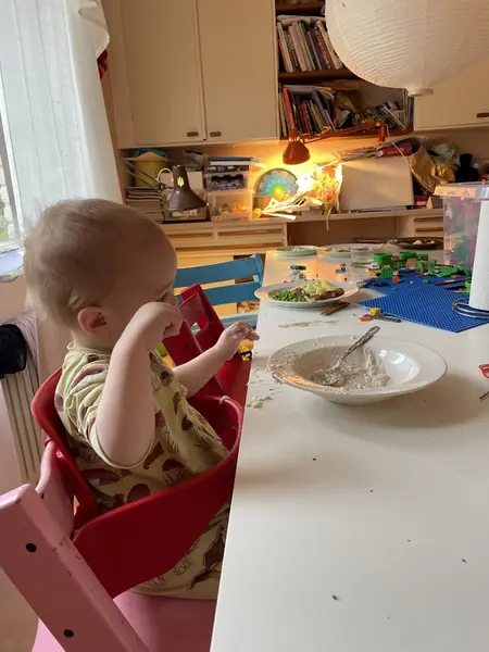 Gösta åt gröt så vilt att han fick duscha, Tage kan ha fått i sig en vindruva.