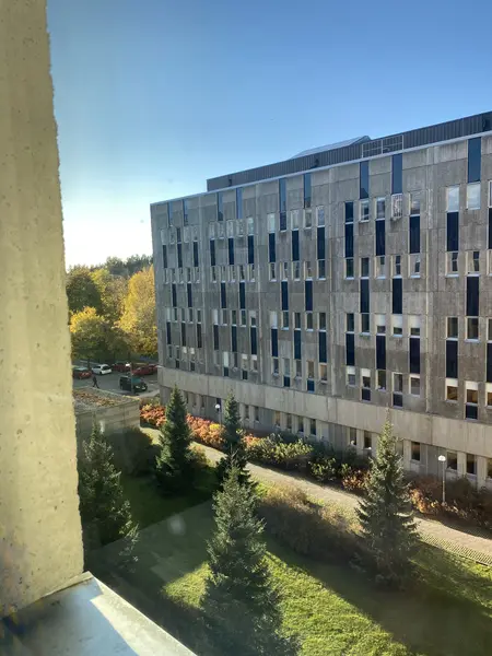 Jag vaknar vid halv nio i rum 17 och duschar och går för att hämta en kopp kaffe i anhörigköket. Kaffemaskinen krånglar som den oftast gör men efter att ha öppnat luckan och stängt av och på några gånger samt klappat lite hårt och omruskande på den så släpper den ut mitt morgonkaffe innan jag hinner ställa tillbaka muggen på plats. Missar några klunkar men fångar upp det mesta. Tar med kaffet och går till rum 19 i korridoren. Jag möter en undersköterska i slussen som också är på väg in. J ligger vaken i sin säng och har en sjuksköterska på rummet. Kontroller har tagits, temperatur, blodtryck och syresättningen i blodet. Blodtrycket var lite lågt så det tas igen efter ett tag, då lite bättre. De två manliga sköterskorna lämnar oss och jag konstaterar att Jesper vet att det är tisdag idag, han har sovit skapligt inatt men är trött. Jag sätter på Lars Winnerbäck på Spotify på hans mobiltelefon. J säger att han behöver köpa vinterkläder, skojar om att han ska köpa bävernylon. Förklarar att det får vänta och att nu använder vi sjukhusets kläder, vit t-shirt, grå mjukisbyxor, underbyxor, vita strumpor och en mjukiströja med knäppning fram, som byts till rentvättade varje dag. Pga din infektionskänslighet är det viktigt att vi använder rena kläder varje dag och vi har ingen tvättmaskin att tvätta privata kläder i. Jag har hämtat dunjacka och köpt varm mössa och fingervantar, jeans och tjocktröja finns också medtaget hemifrån i väntan på att de nya stamcellerna ska hitta rätt i kroppen och börja bygga upp immunförsvaret så att risken för infektioner och dylikt inte är så överhängande. Han ser en fågel genom fönstret på den grå husfasaden.
