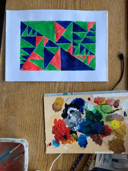 Jag äter lunch i Ateneums café, minestronesoppa och sallad. Sedan promenerar jag till Musikhuset via Odet. Jag har haft som vana att besöka matinéerna i Cameratasalen där musikstuderande gratis spelar för publik. Den här gången är de så många att jag besluter mig för att gå i pausen. Jag tar en kaffe och en pistageglass i caféet. Det blir dyrt och jag inser att jag har överstigit min dagliga budget. Tar tåget hem där jag nästan färdigställer en påbörjad målning. Eftersom jag har ätit en stadig lunch blir det bara gröt med sylt till middag.