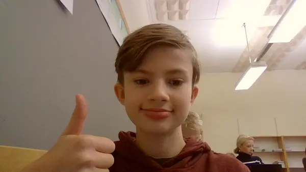 När jag väl var på skolan tog jag mina böcker och gick till min första lektion, engelskan. Jag väntade med mina vänner utanför lektionssalen en stund innan läraren kom dit. Först skulle vi läsa i 15 minuter, vilket vi gör varje dag, och efter det förhörde hon oss på glosorna med ett Kahoot. Sedan gjorde vi några samarbetsuppgifter i engelskaböckerna i grupper med fyra elever.